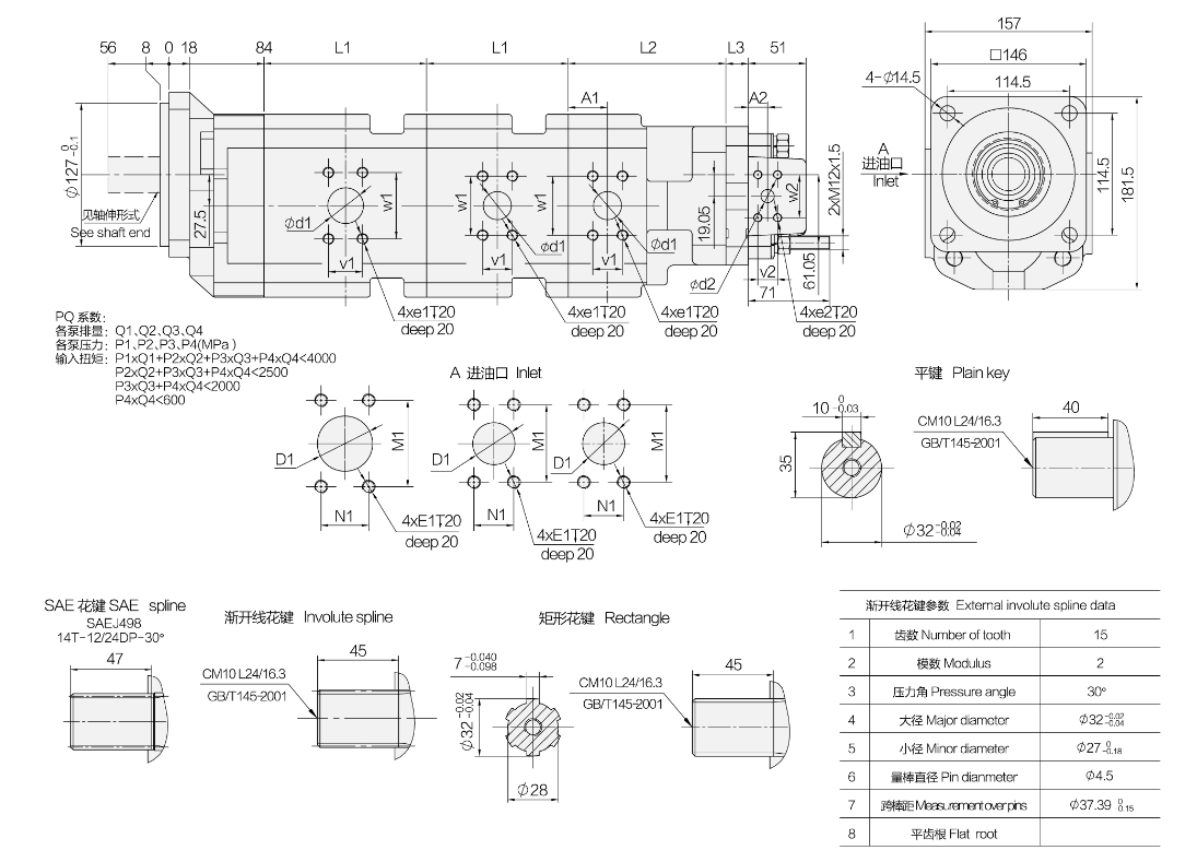 Input shaft coupling form can choose flat key, rectangular spline, SAE involute spline, metric involute spline.